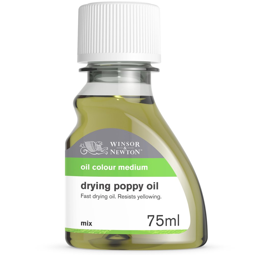 Extracted from the seeds of the poppy plant. Drying Poppy Oil makes oil colour "fatter" and has a pale character. Fast-drying oil that stabilises colour’s film. Dries slower than linseed oil. Preserves good, clear colours – even in the spectrum of light colours.