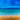 Water down a squeeze of Process Cyan to the consistency of single cream. This is used to block in the sky and sea areas. Note how areas of the painting appear darker than others. This is due to the paint being applied heavier towards the horizon in the sea and towards the bottom of the sky. Follow the same process using yellow ochre for the shore area.