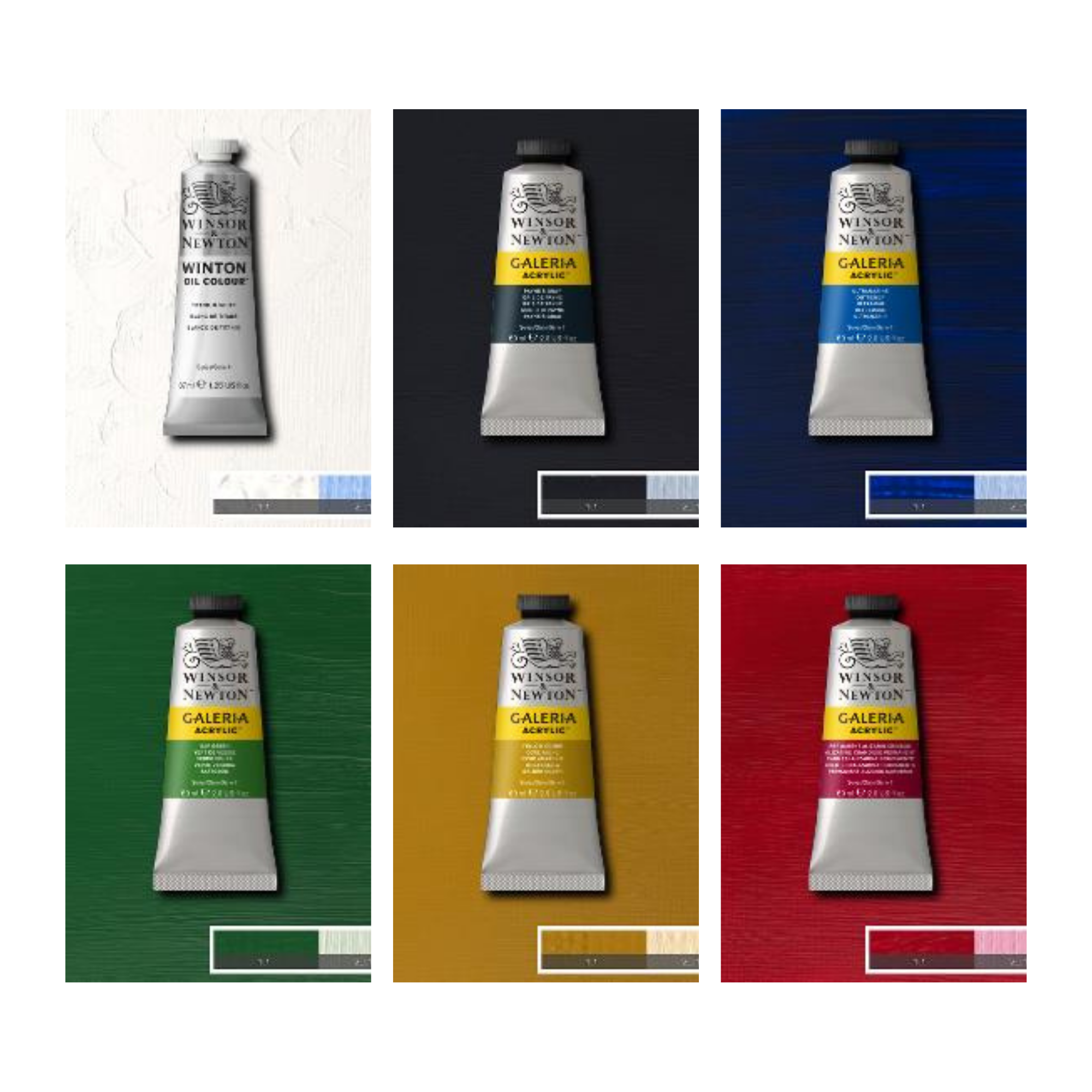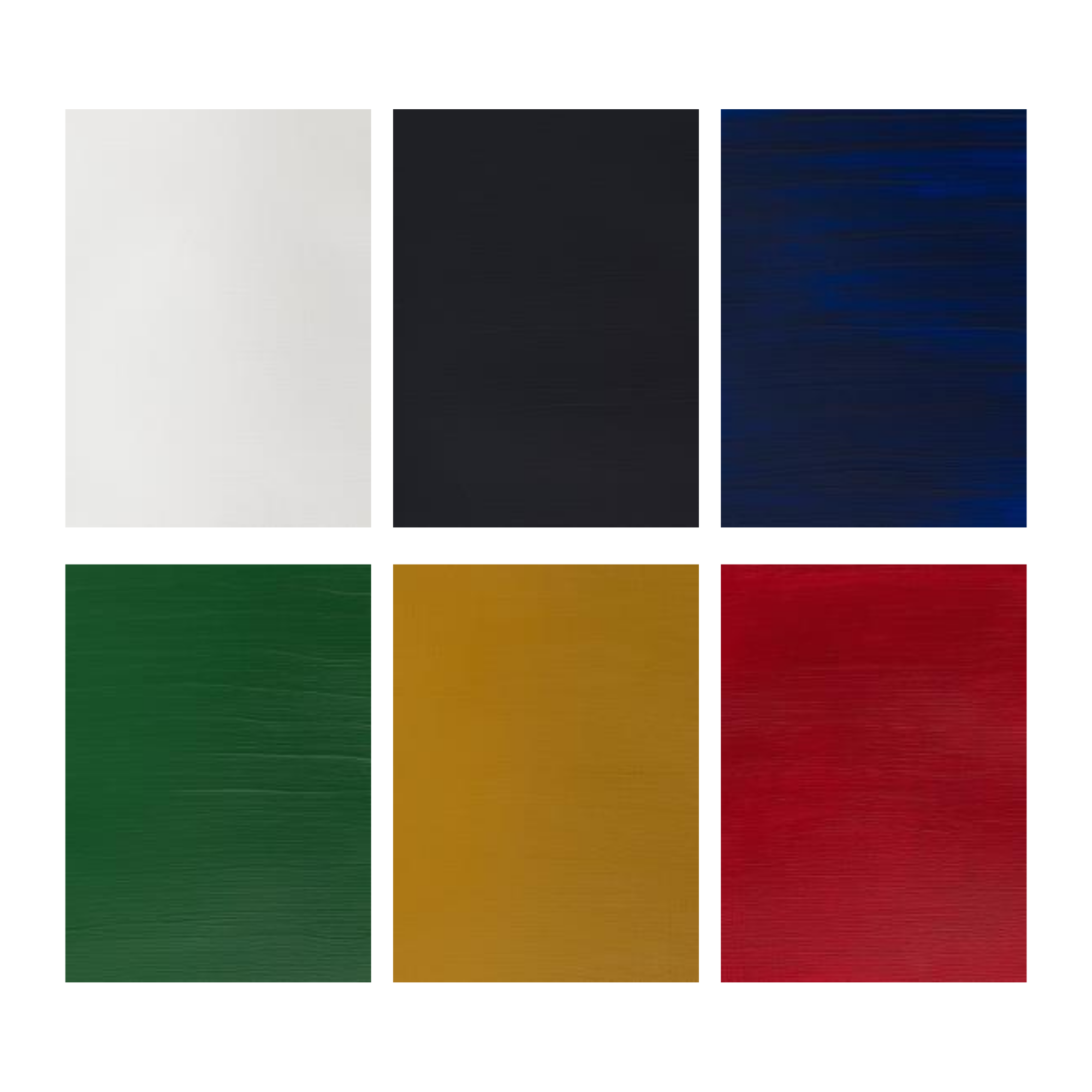 This bundle includes Titanium White, Ultramarine, Permanent Alizarin Crimson, Payne’s Gray, Sap Green, and Yellow Ochre; perfect for artists exploring new styles or expanding their colour collection. Bring your ideas to life with confidence and vibrant colour.